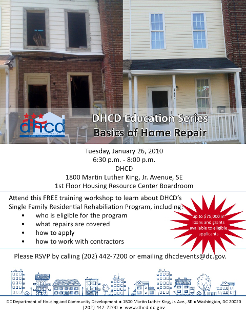 Learn Home Repair Basics w/ DHCD Posted on January 17, 2010 by Cary 4th St. Neighbor Ilyssa forward this on: Rate this:Share this: Email a link to a friend (Opens in new window) Email Share on Facebook (Opens in new window) Facebook Print (Opens in new window) Print Like Loading...