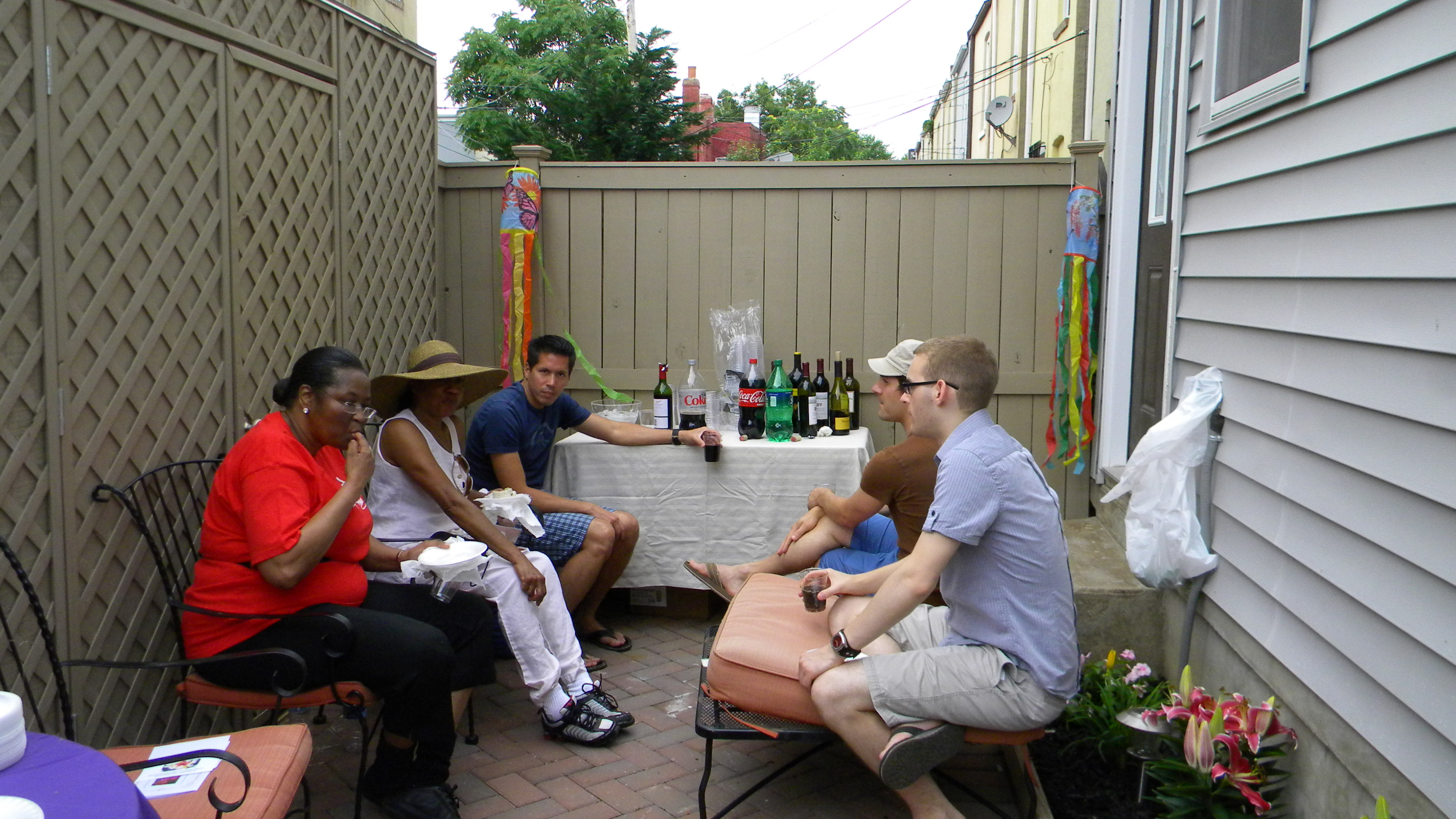 The Reception that followed was in the beautify yard of our neighbor Laura Bowen. Though the reception was supposed to end at 6:30pm, our gracious hostess entertained until nearly 10pm. spending time with great neighbors made the time go fast.