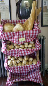 A portrait of Alfio Caruso proudly overlooks some fresh bread on a Saturday morning.
