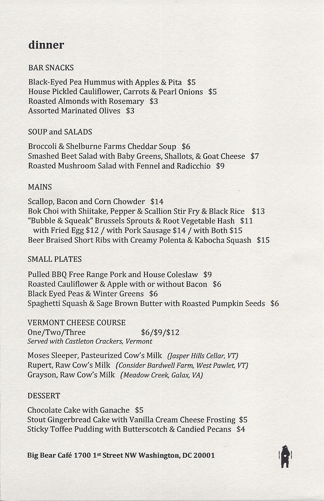 Our new winter menu is now out, and our Bubble and Squeak is delicious. We also have a beer braised short-rib with fresh stone ground polenta and Kabocha squash, and a beautiful scallop corn chowder.