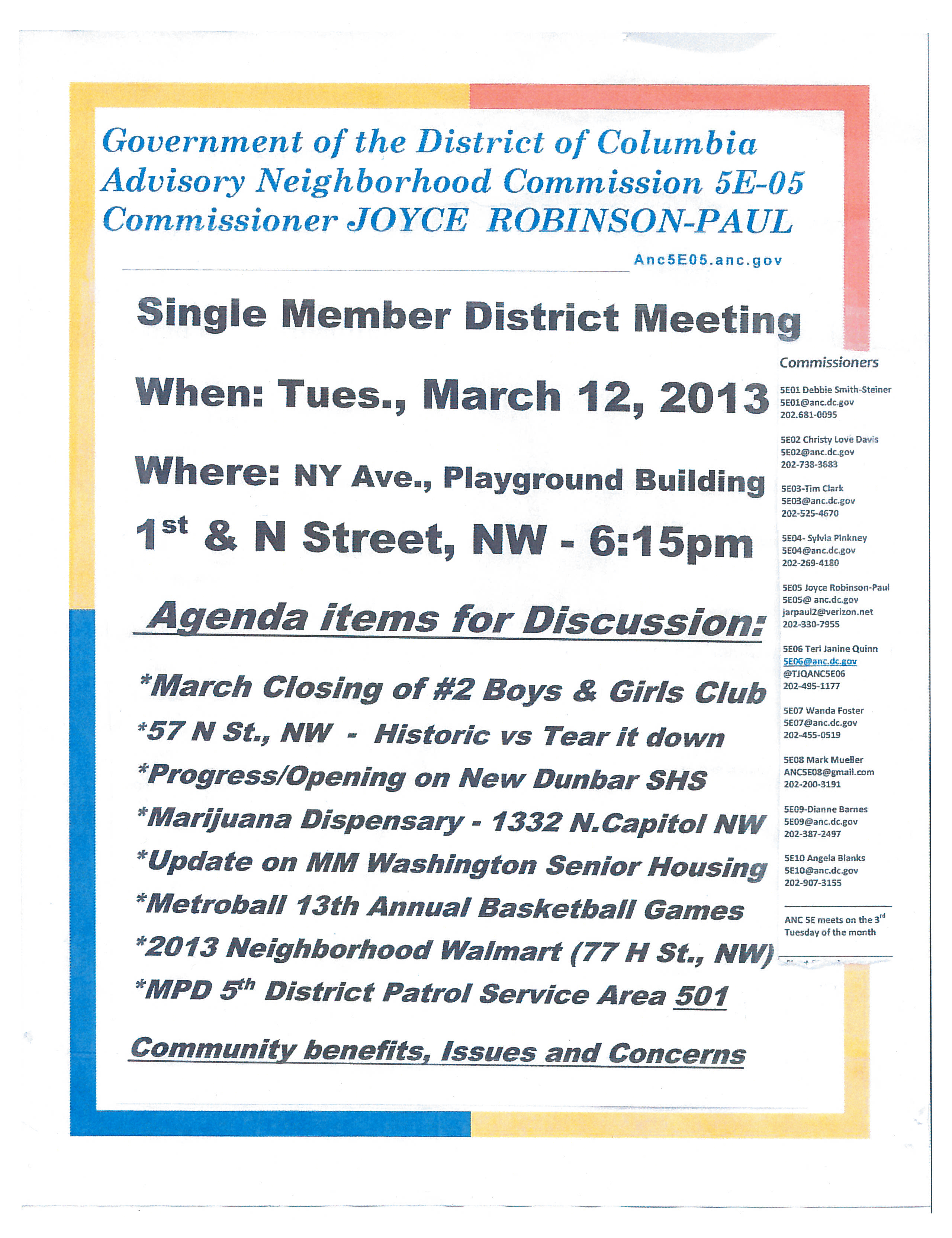 Tuesday, March 12 Single Member District ANC Meeting Posted on March 11, 2013 by mrgeovani Rate this:Share this: Email a link to a friend (Opens in new window) Email Share on Facebook (Opens in new window) Facebook Print (Opens in new window) Print Like Loading...