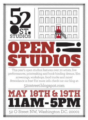 Speaking of the 52 O Street Studios — see the announcement for the Open Studios event going on this weekend!