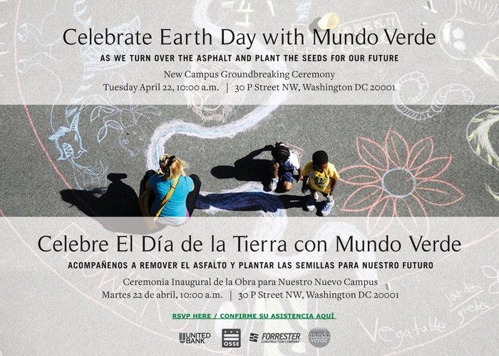 Celebrate Mundo Verde Public Charter School Earth Day – Tuesday, 04/22/2014 Posted on March 21, 2014March 21, 2014 by scottrobertsinbloomingdale From: Mundo_Verde_Bilingual_Public_Cha@mail.vresp.com Subject: Groundbreaking Ceremony / Ceremonia Inaugural Date: Fri, 21 Mar 2014 18:17:00 +0000 MundoVerde Earth Day 2014 Rate this:Share this: Email a link to a friend (Opens in new window) Email Share on Facebook (Opens in new window) Facebook Print (Opens in new window) Print Like Loading...