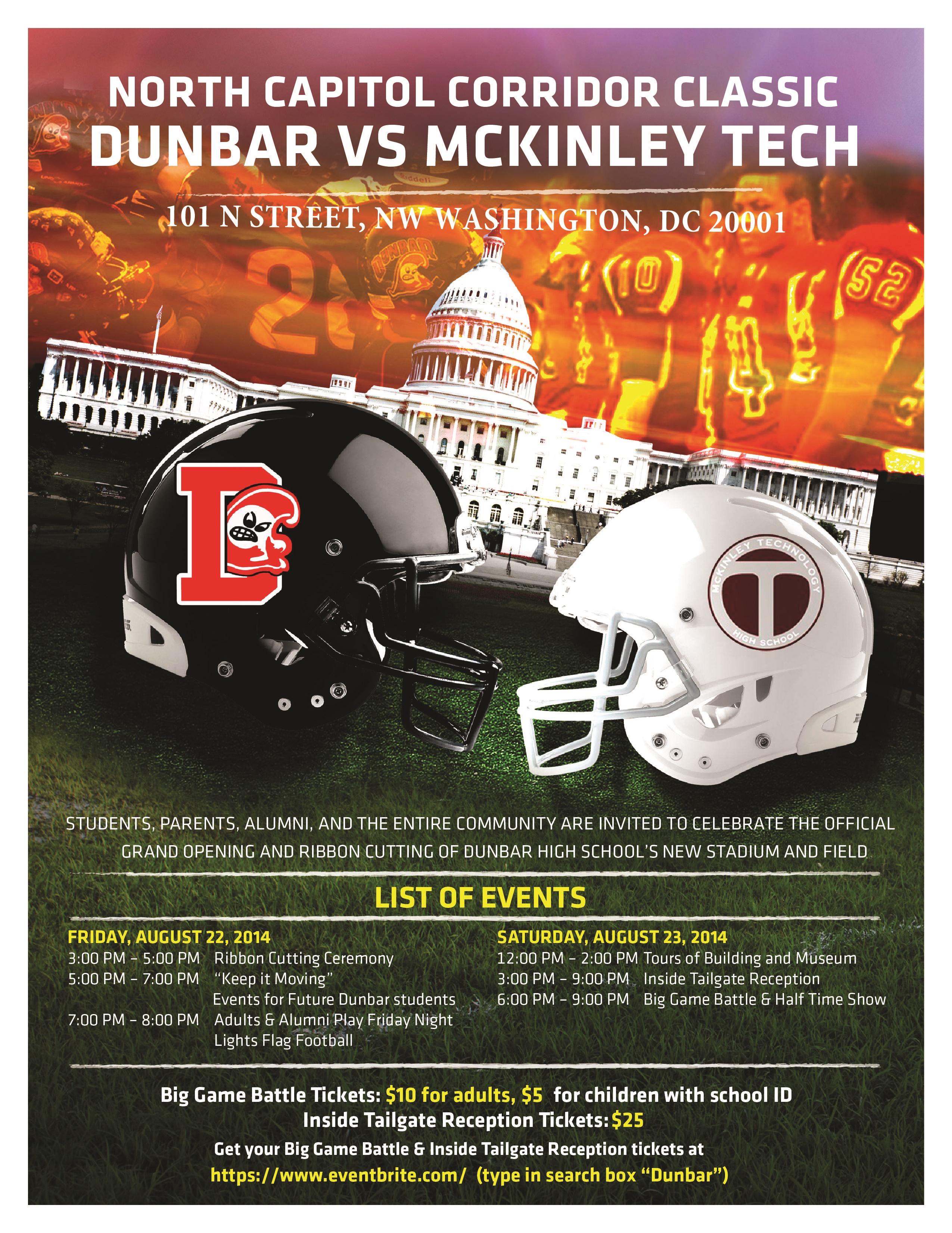 you are cordially invited to participate in the grand opening of the new Dunbar Stadium Posted on August 5, 2014 by scottrobertsinbloomingdale From: Carrie Thornhill Subject: FW: You are cordially invited to participate in the grand opening of the new Dunbar Stadium Date: Mon, 4 Aug 2014 22:49:22 -0400 Carrie Thornhill Dunbar Alumni Federation Dunbar vs. McKinley Tech 2014 08 22 Rate this:Share this: Email a link to a friend (Opens in new window) Email Share on Facebook (Opens in new window) Facebook Print (Opens in new window) Print Like Loading...