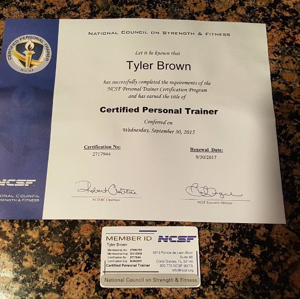 Congrats to Sweat Club founder Tyler Brown: now a Certified Personal Trainer !